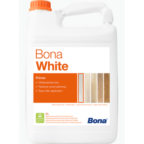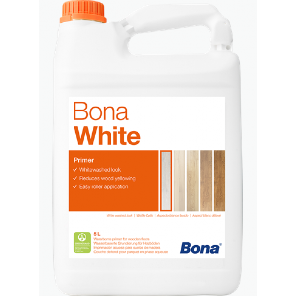 Bona White – однокомпонентная, водно-дисперсионная грунтовка на полиуретан-акрилатной водной основе для деревянных полов, предназначенная для использования в системе с паркетными лаками Бона. Грунтовка Бона Вайт придаёт полу белый оттенок, интенсивность которого регулируется за счёт количества нанесённых слоёв. При нанесении одного слоя грунтовки Вайт сохраняется натуральный, естественный вид древесины, а для создания насыщенного более белого оттенка необходимо нанести 2 или 3 слоя грунтовки.