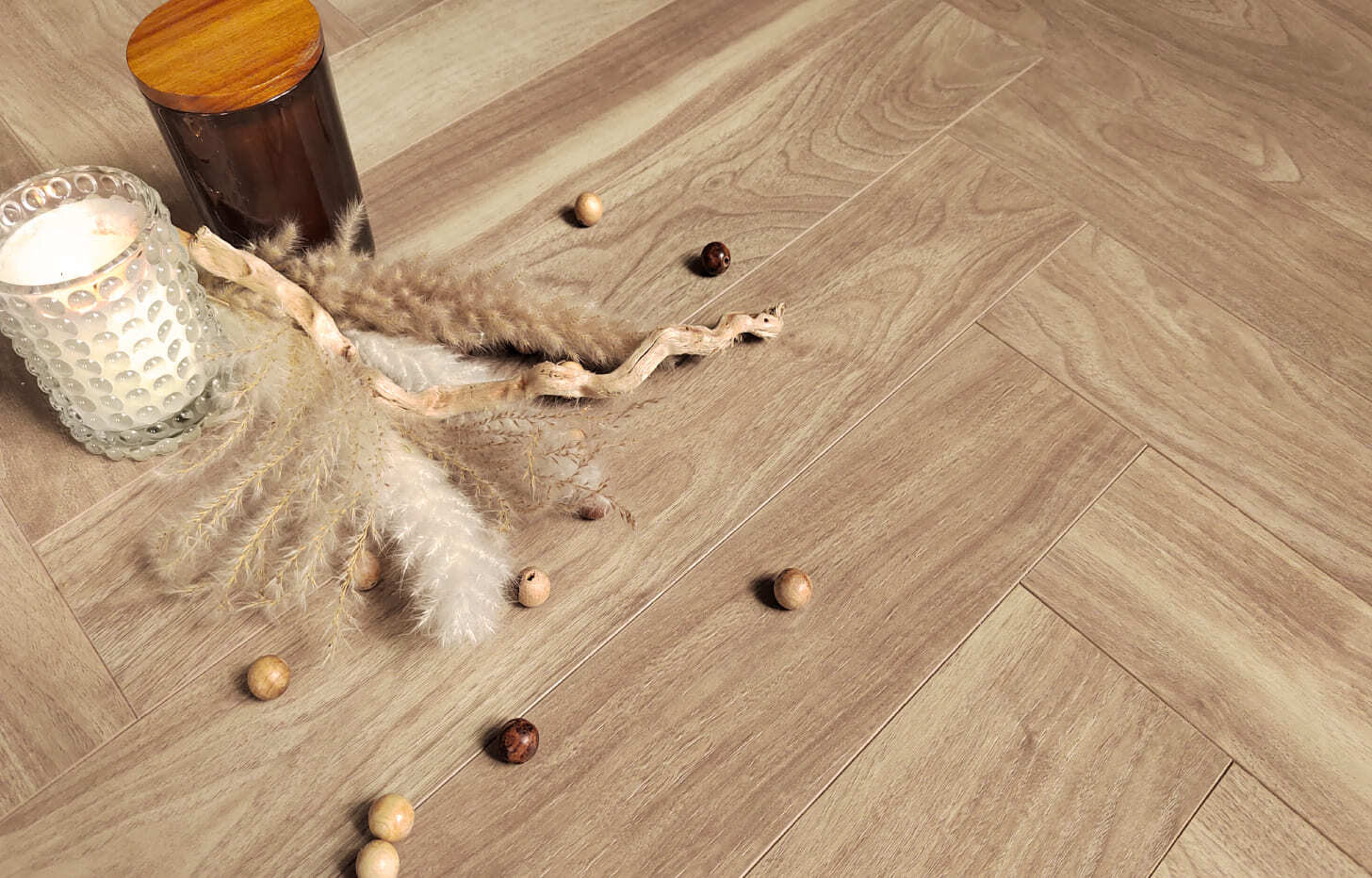 Ламинат Орех Питсбург НС выполнен в приятном, светлом песочно-бежевом оттенке с мягкой, едва уловимой текстурой натурального ореха. Этот цвет визуально расширяет пространство и наполняет его светом. Классическая укладка английская ёлочка придает полу динамику и респектабельный вид, а четырехсторонняя фаска на каждой планке четко очерчивает геометрический рисунок, создавая полное ощущение натурального паркета.