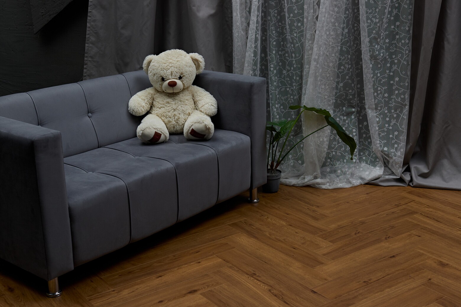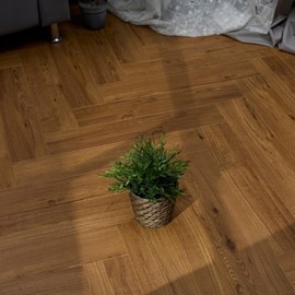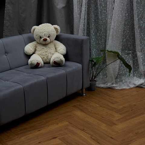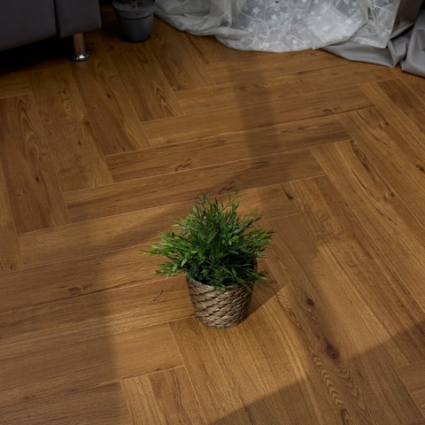 Яркий и насыщенный коричневый оттенок декора Беллен однозначно привлекает внимание. Частые сучки и трещинки, рыжий подтон, а также прокрашенная в цвет аккуратная фаска с четырёх сторон делают этот декор максимально похожим на паркет из натурального дуба. Идеально подойдёт для интерьера в стиле кантри!