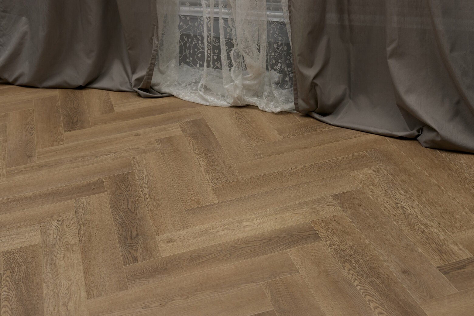 Рельефная текстура под дерево и аккуратная четырёхсторонняя фаска, окрашенная в тон декора, создают эффект настоящего паркета, но при этом покрытие обладает всеми преимуществами современных технологий: