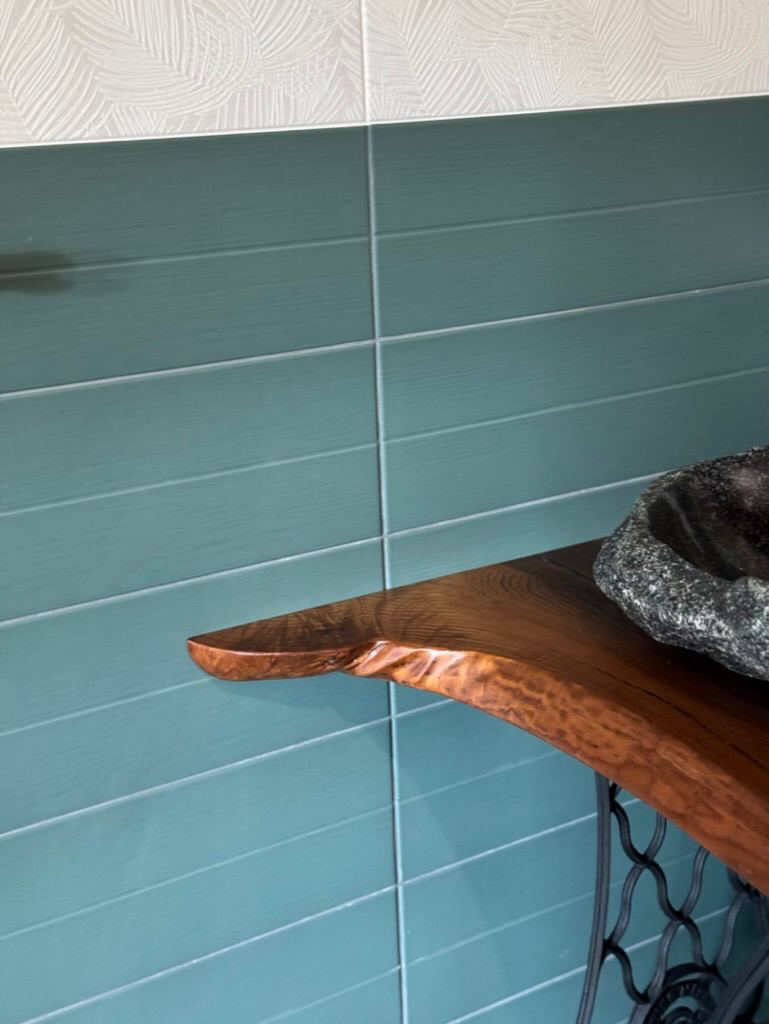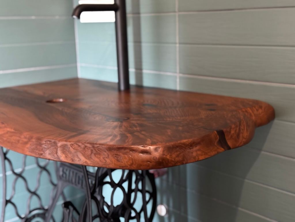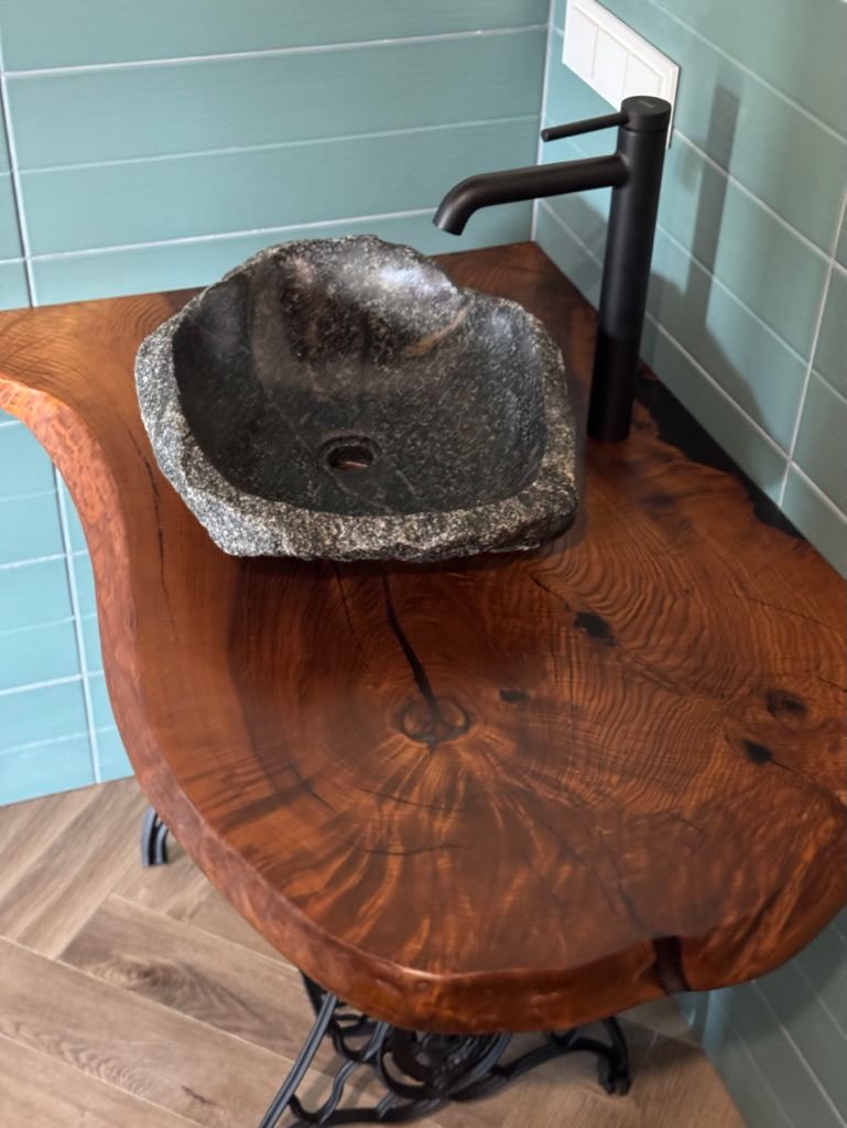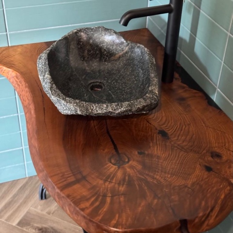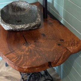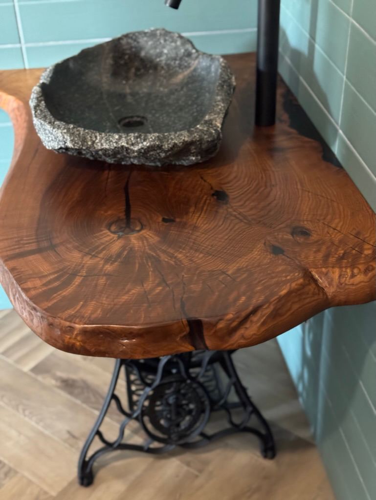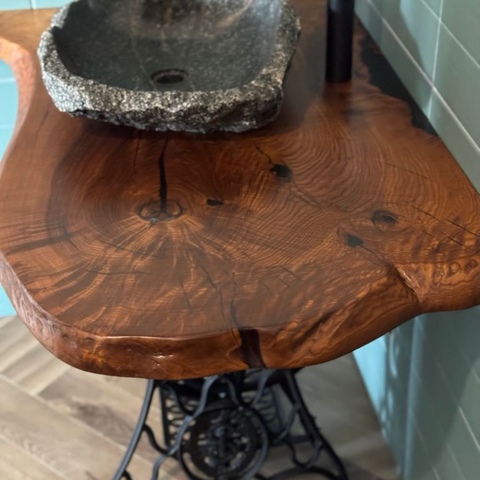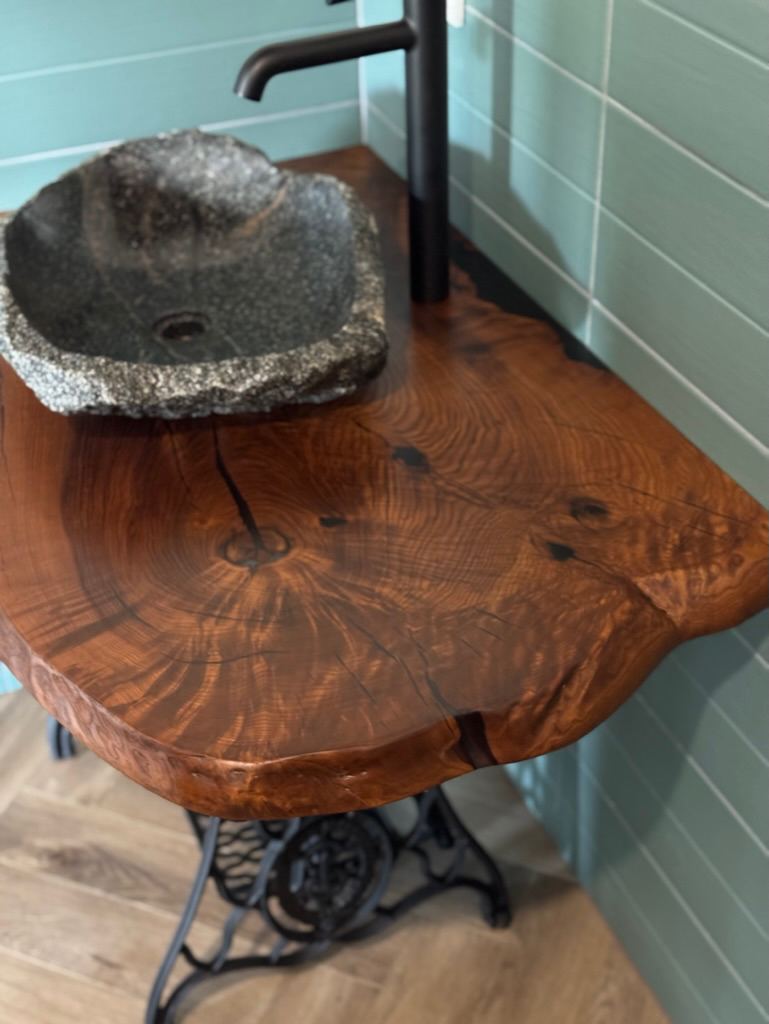 Столешница в ванную из массива термоясеня