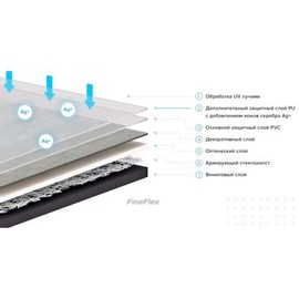 Виниловая плитка Fine Flex подходит для укладки на ровную поверхность пола, хорошо ложится на теплые полы – хорошо нагревается и достаточно долго держит тепло. Покрытие 100% влагостойкое, обладает хорошей звукоизоляцией и шумопоглощением. Структура Fine Flex Stone определяет основные качественные и эксплуатационные характеристики этого напольного покрытия. Надежную защиту от внешних истирающих нагрузок обеспечивает прочный основной защитный слой толщиной 0.5 мм, усиленный дополнительным полиуретановым покрытием. Стабильность геометрических размеров гарантирует армирующий стеклохолст. Повышенная механическая прочность Fine Flex Stone обеспечивается наличием мраморной пудры в составе основного винилового слоя.