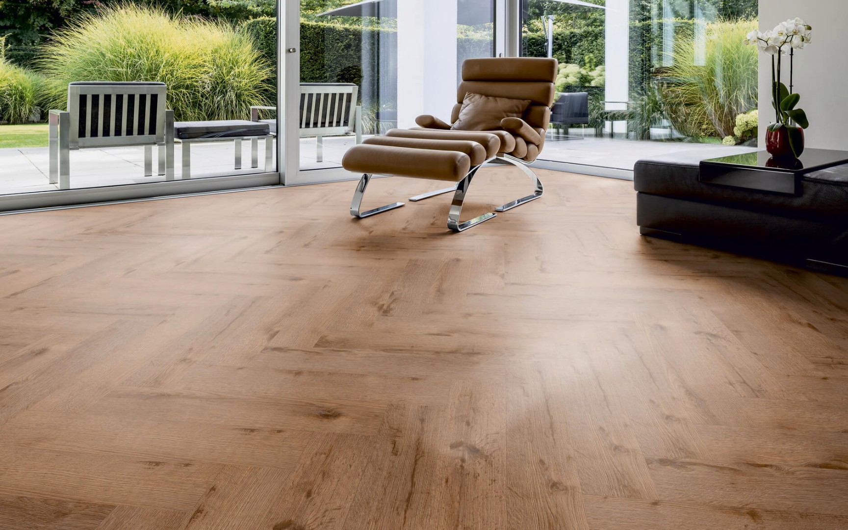 По конструкции виниловый пол Ter Hurne может быть клеевой (PRO), замковый (PERFORM) и на HDF-плите (COMFORT).